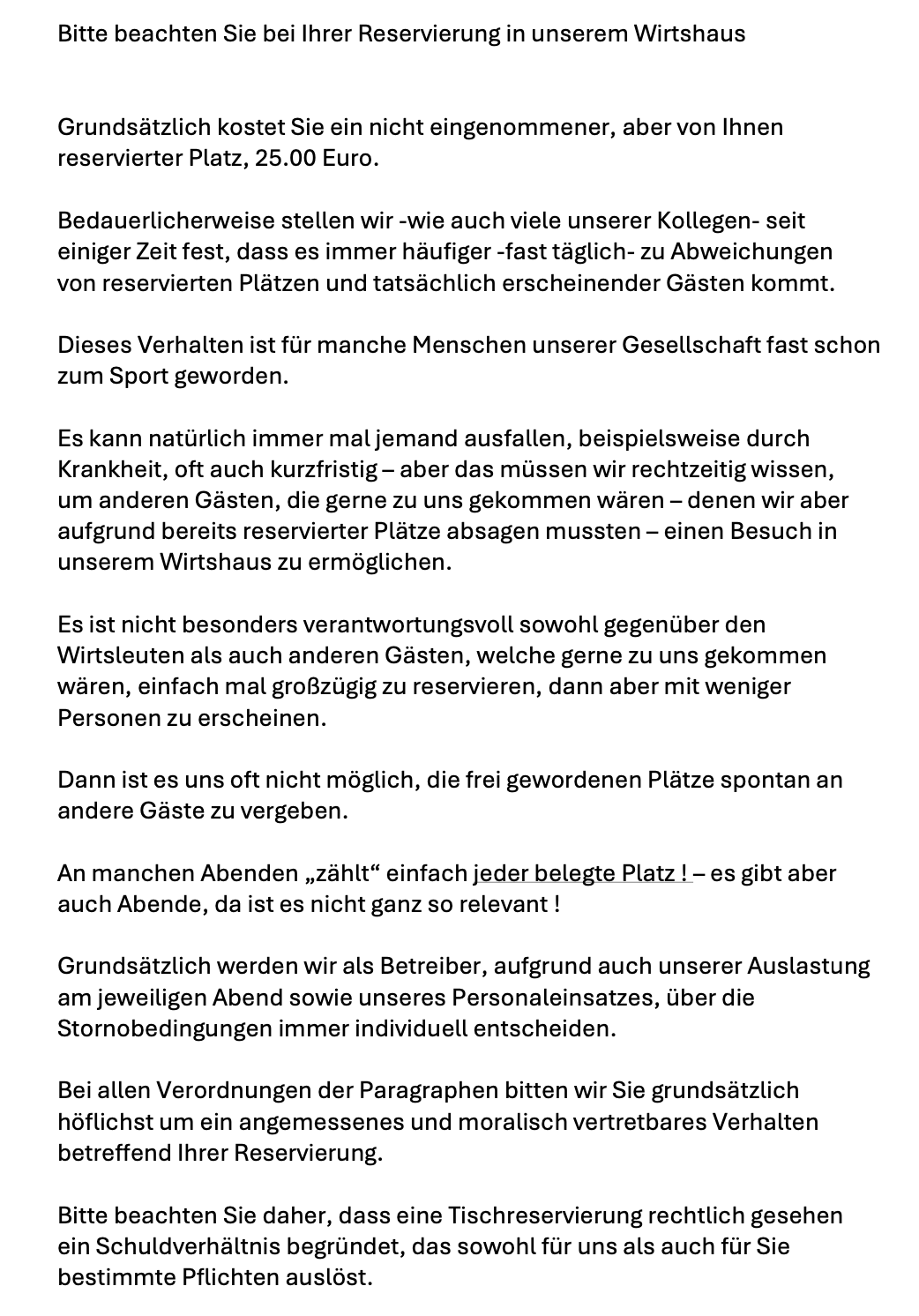 Abends, im laufenden Betrieb, ist es uns oftmals nicht möglich Telefonate zu führen. Wir bitten um euer Verständnis.